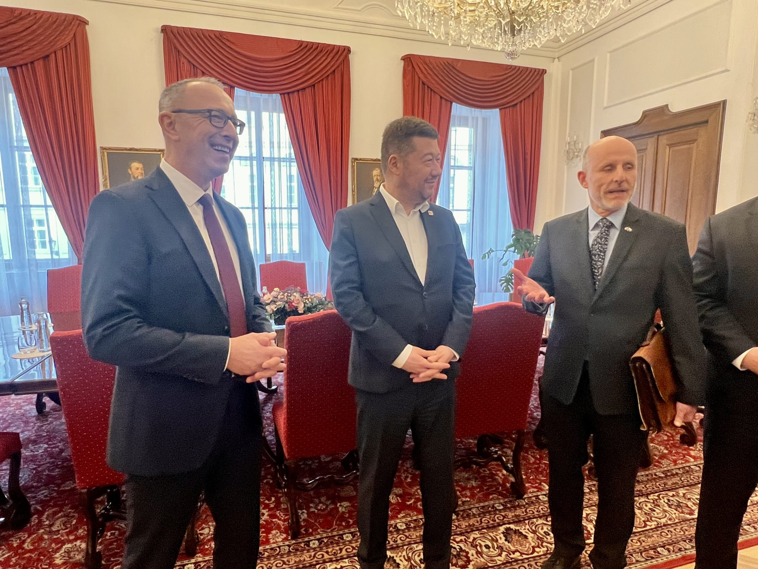 Tomio Okamura und Verkehrsminister Ivan Bednárik empfangen hochrangige Delegation des Sächsischen Landtags zu strategischen Gesprächen