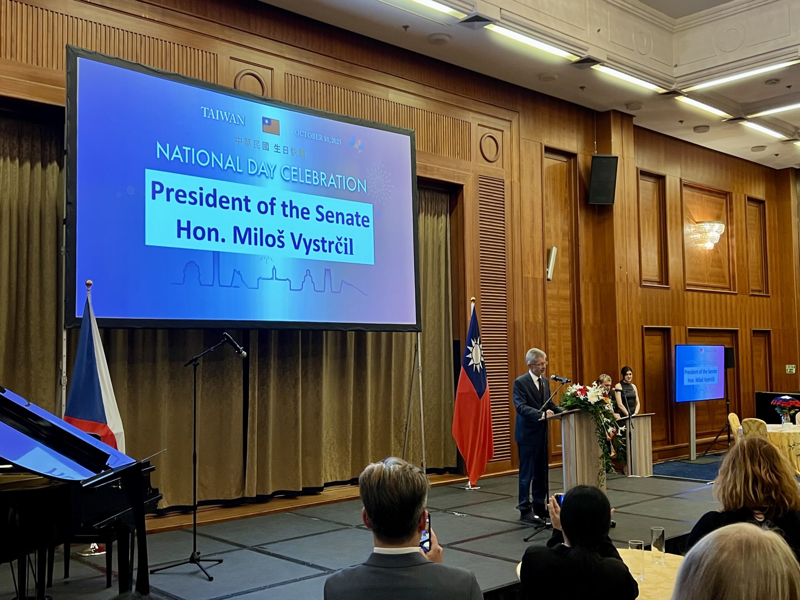 The ceremony also included messages directed to Miloš Vystrčil, President of the Senate of the Czech Republic, and Markéta Pekarová Adamová, President of the Chamber of Deputies. Neither of them attended the event in person, reflecting the cautious approach of the Czech government, which, like most countries, upholds the One-China policy recognizing the People’s Republic of China as the sole legitimate government of China, including Taiwan.